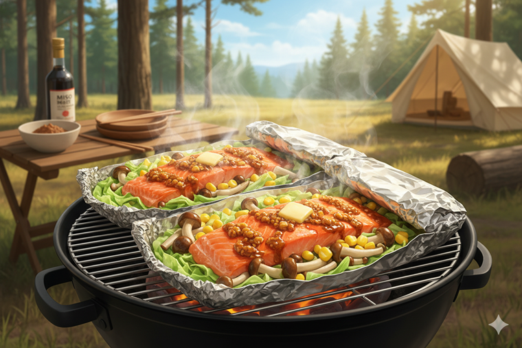 北海道の郷土料理である「ちゃんちゃん焼き」を、キャンプ向けにアレンジしたホイル焼きレシピです。キャベツやとうもろこしなど、夏の旬の野菜をたっぷりと摂取できるのが魅力です。