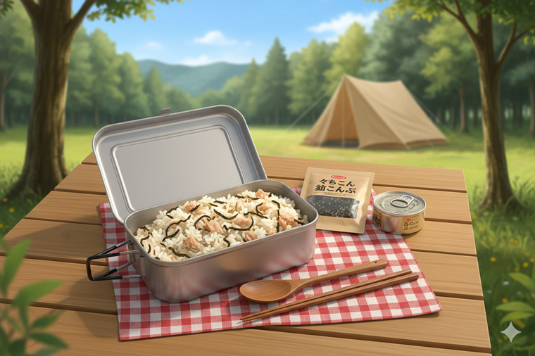 汗をたくさんかく夏キャンプでは、塩分補給も兼ねたメニューが役立ちます。くらこんの塩こんぶとツナ缶を使った炊き込みご飯は、包丁もまな板も不要で準備が非常に簡単です。ツナのコクと塩昆布の旨味が絶妙にマッチし、冷めてもおにぎりにして美味しく食べられるため、多めに炊いて翌日の朝食にするのもおすすめです。