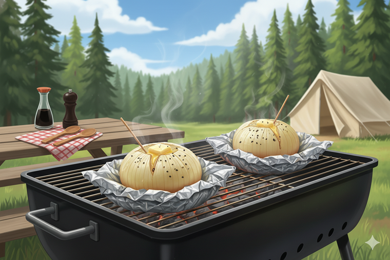 お肉料理の付け合わせとして大活躍するのが、玉ねぎを丸ごと使ったホイル焼きです。BBQグリルの炭のそばにコロンと転がしておくだけで完成する、究極の放置レシピとも言えます。炭火の強力な遠赤外線効果によって玉ねぎの水分が閉じ込められ、驚くほどトロトロで甘い仕上がりになります。