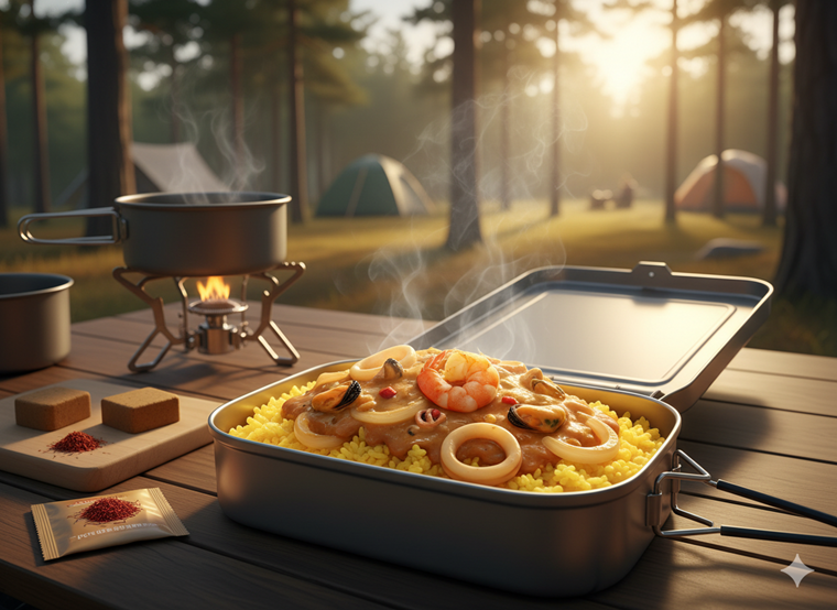 キャンパーに大人気の万能クッカー「メスティン」を使えば、炊飯とカレー作りが同時に楽しめます。魚介の旨味が凝縮されたシーフードカレーと、サフランの黄色が鮮やかな本格サフランライスの組み合わせは、キャンプサイトで注目を集めること間違いなしです。 冷凍シーフードミックスを使えば、下準備も簡単です。
