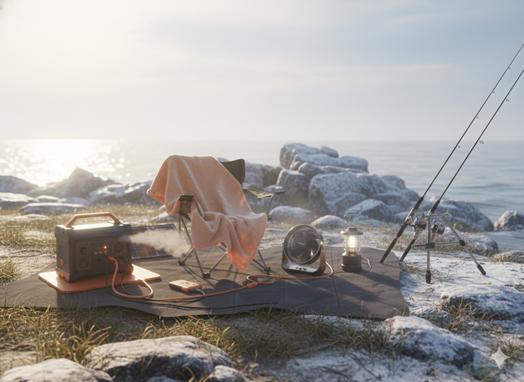 炎天下での釣りや、凍えるような寒さの中での釣りは、身体への負担が大きく、集中力の低下にも繋がります。ポータブル電源は、こうした過酷な環境を快適な空間に変える力を持っています。 夏は小型の扇風機やサーキュレーターで涼しい風を送り、熱中症のリスクを軽減。冬は電気毛布や電気ブランケットで体を芯から温め、寒さによるパフォーマンス低下を防ぎます。